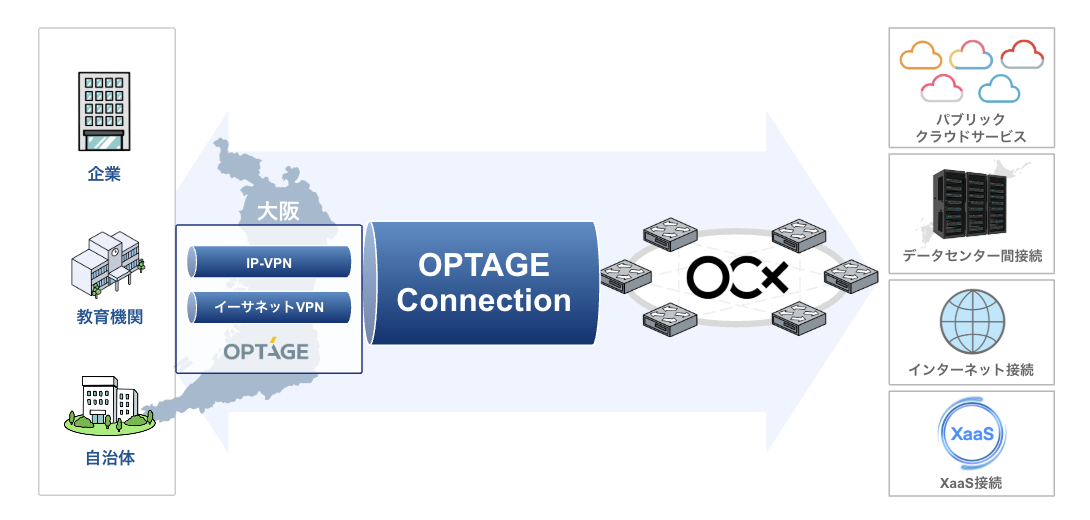 「OPTAGE Connection」は、株式会社オプテージ(以下「オプテージ」)が提供する高品質なアクセスライン「イーサネットVPN」または「IP-VPN」とOCX網を相互接続する機能です。